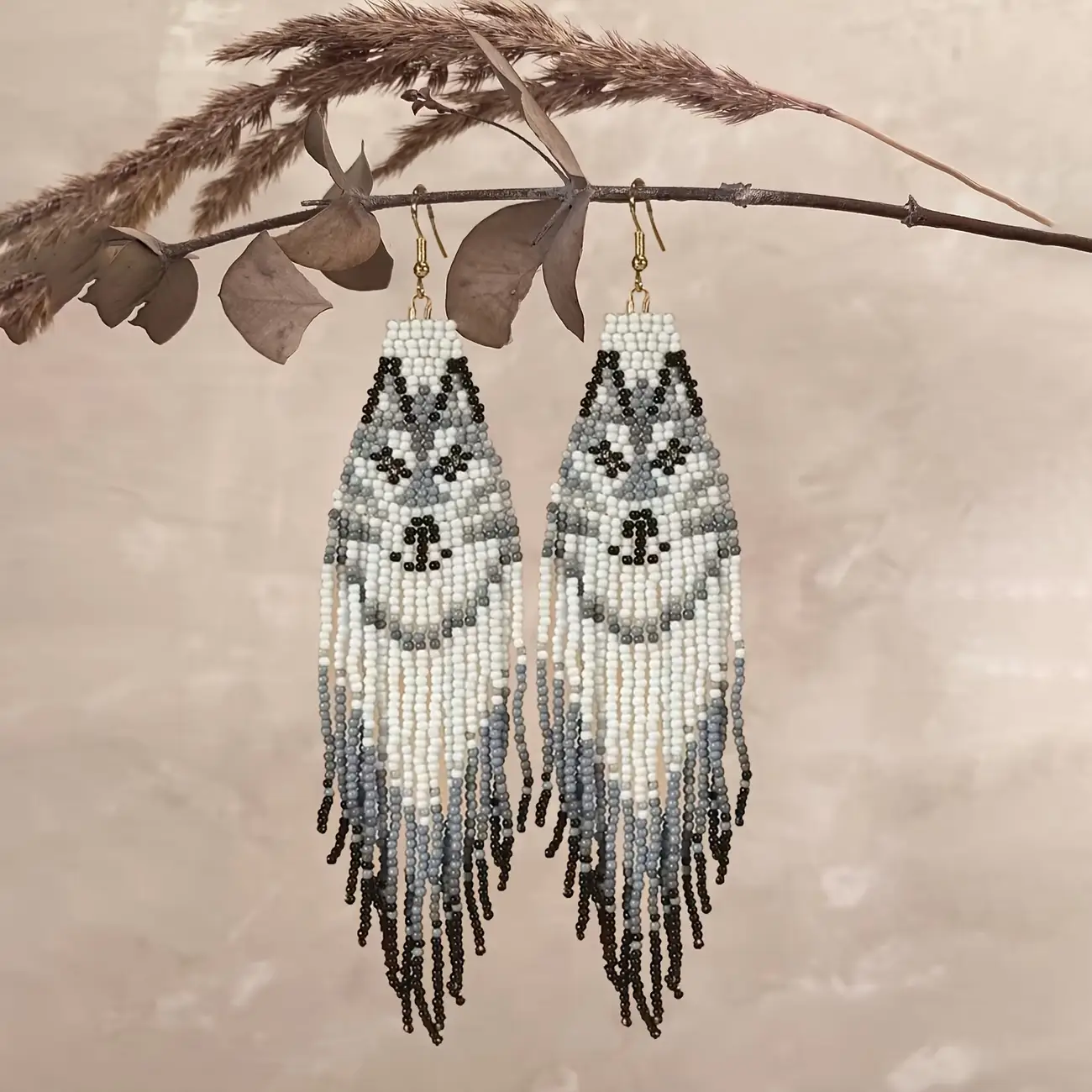Beaded Dangle Wolf Earrings
