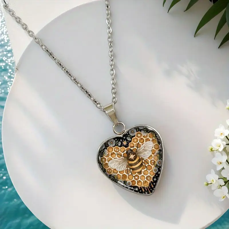 Charming and full of heart, this Heart-Shaped Bee Cabochon Pendant blends the sweetness of a honeybee with the timeless beauty of love. Nestled within a smooth cabochon, the delicate bee motif rests atop a heart-shaped backdrop—capturing nature’s gentle power and the warmth of affection in one elegant design.