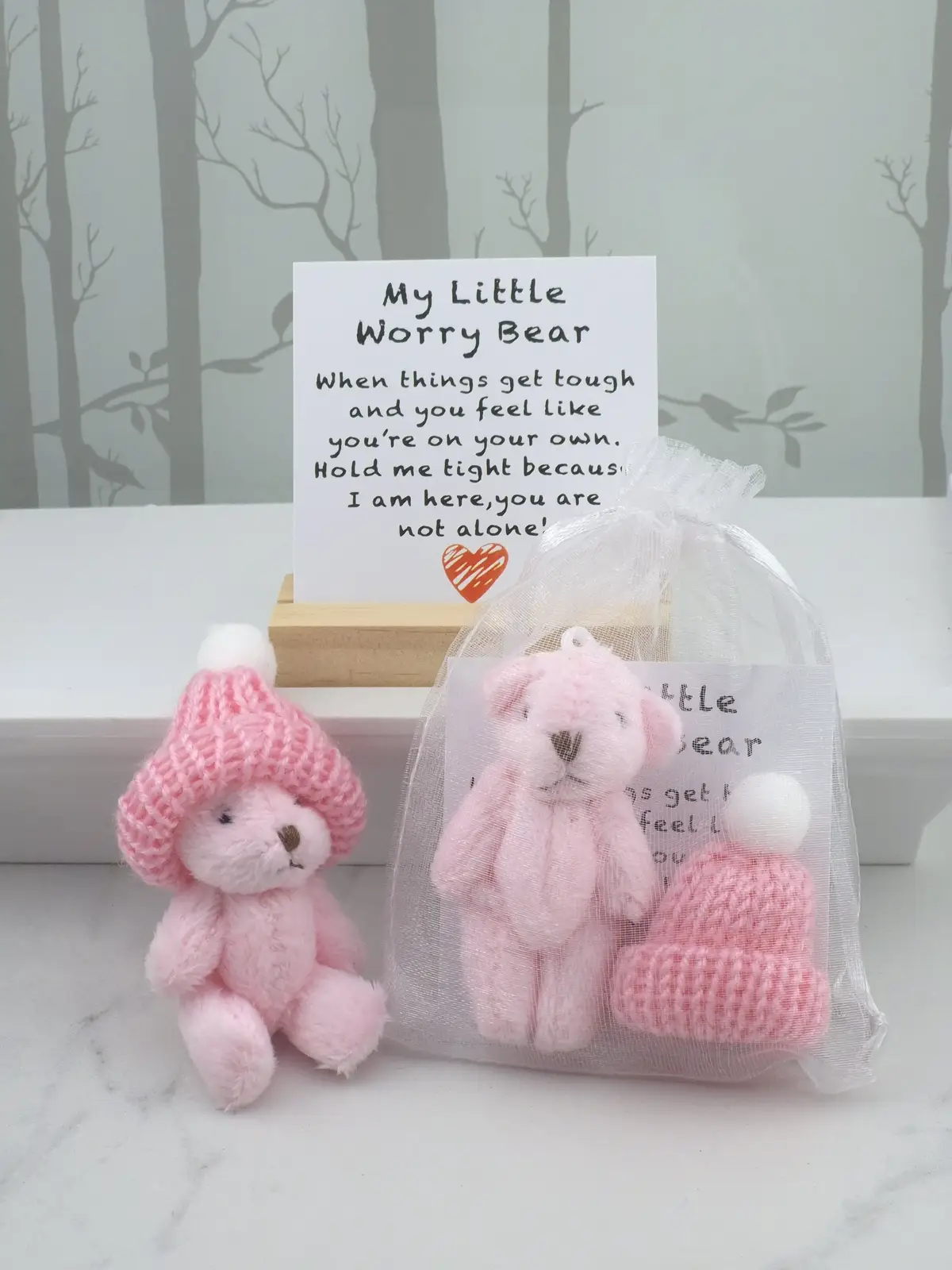 Sweet and soothing, these Pink Little Worry Bears are tender tokens of comfort and care. With their soft blush fur and hand-knit hats, they’re a pocket-sized reminder that it’s okay to feel overwhelmed—and that you’re never alone in your worries.