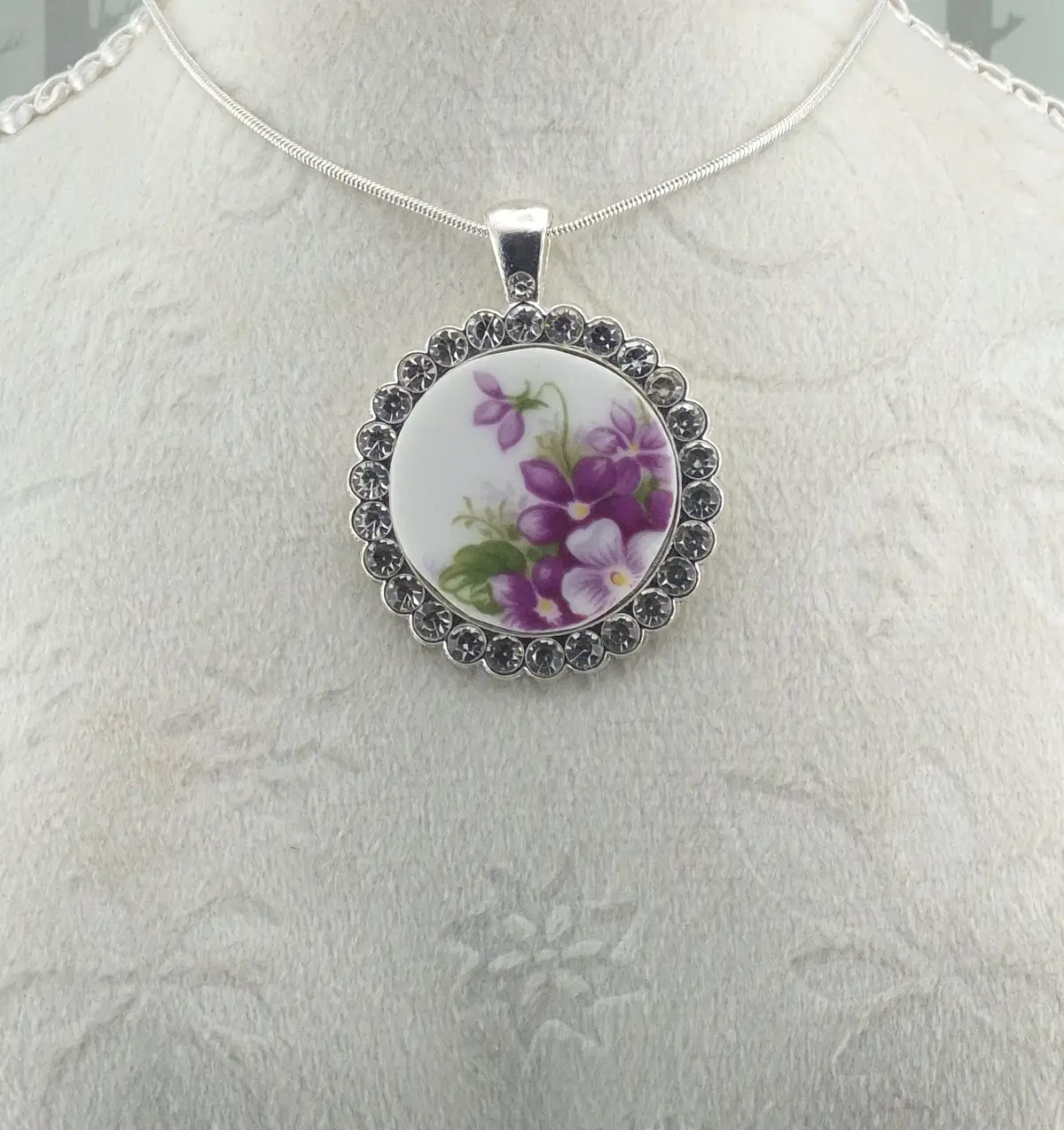 Round Sweet Violets Pendant #6